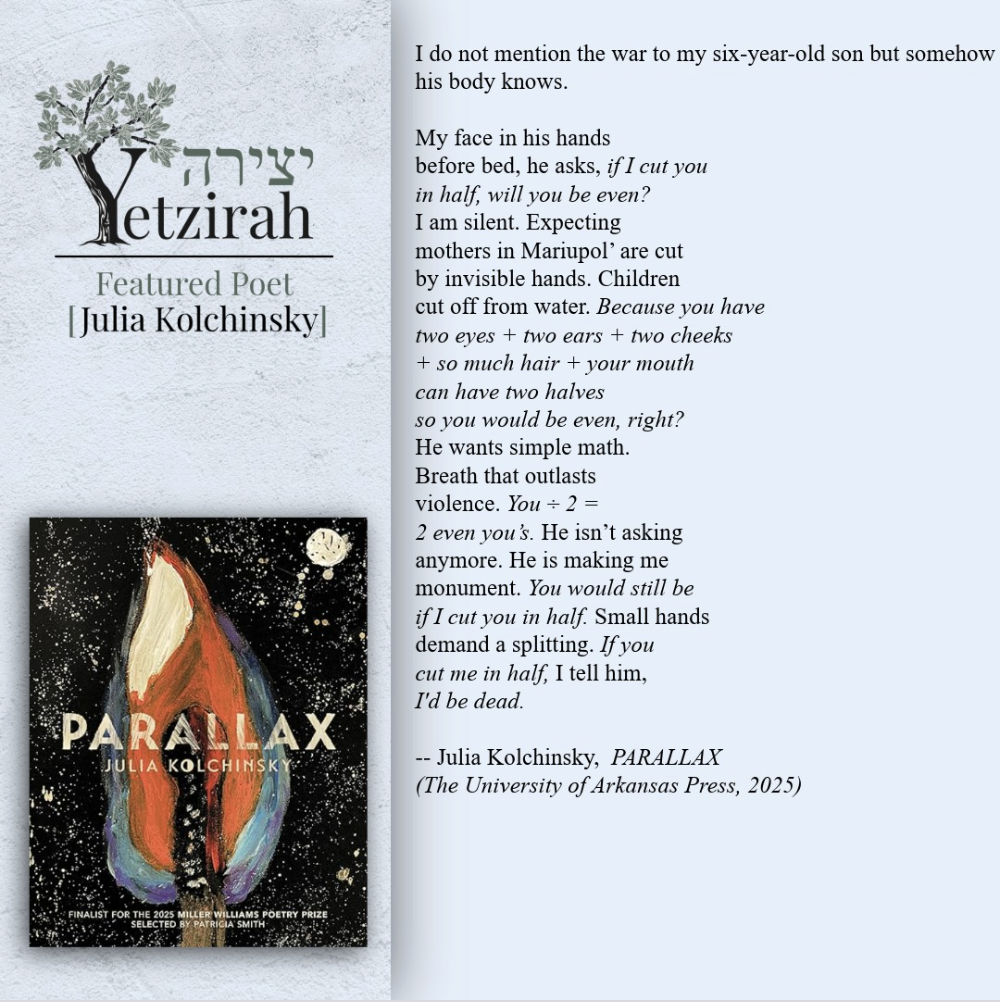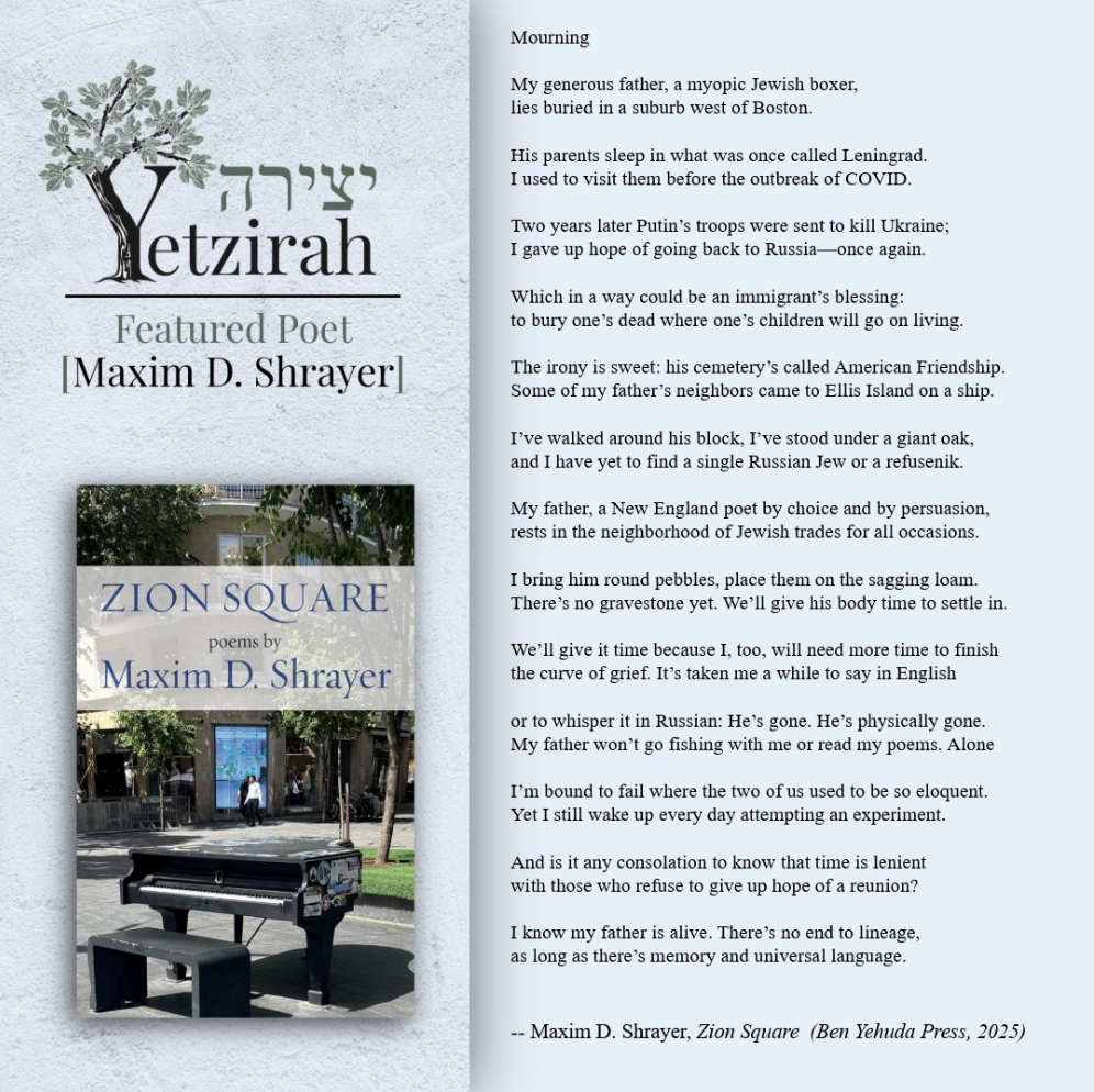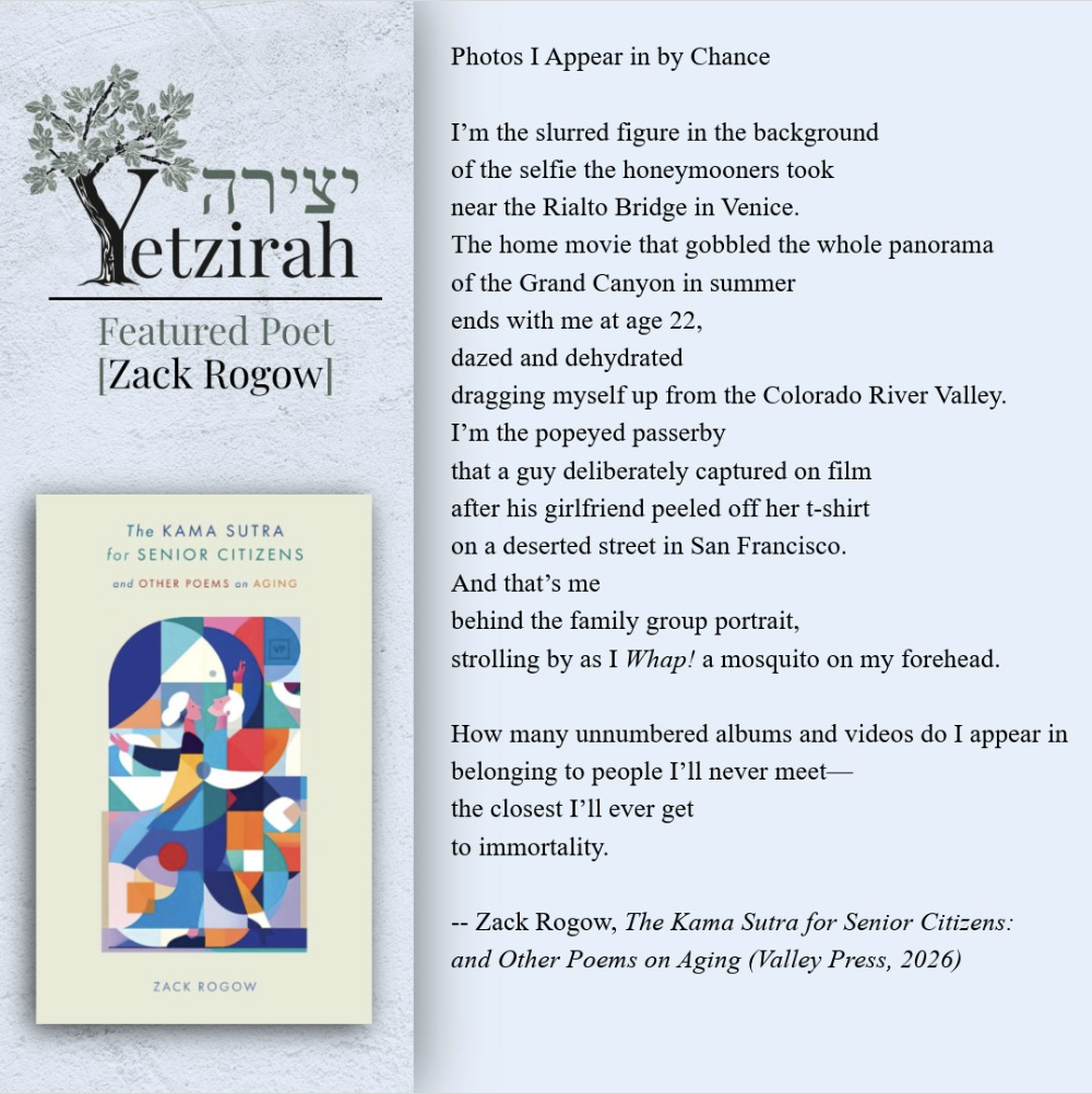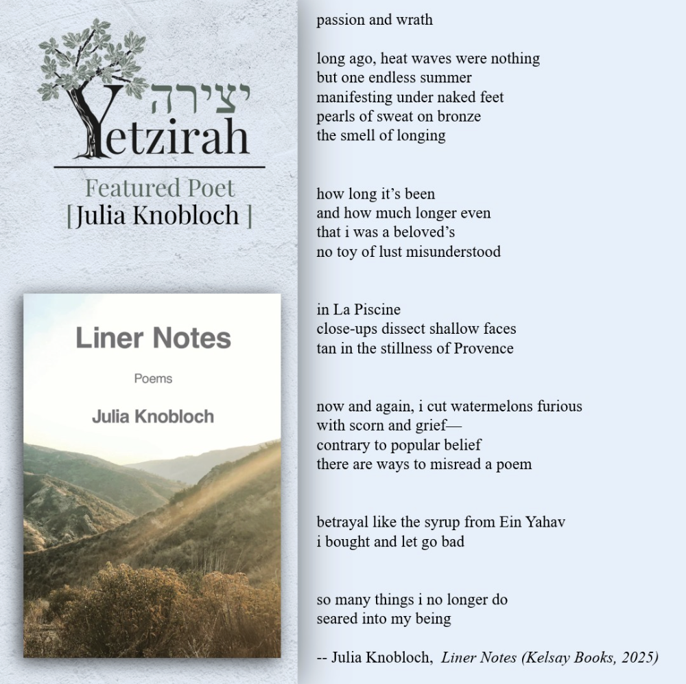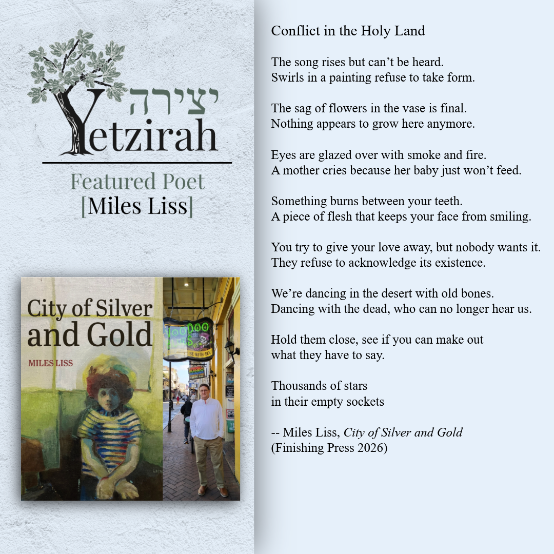 To learn more about a featured poet and read more of their poems, each poet’s name is linked to their profile in Yetzirah’s database.