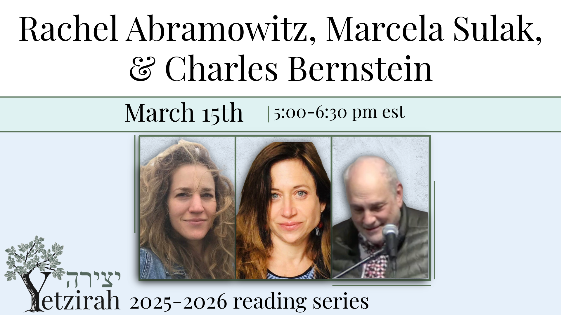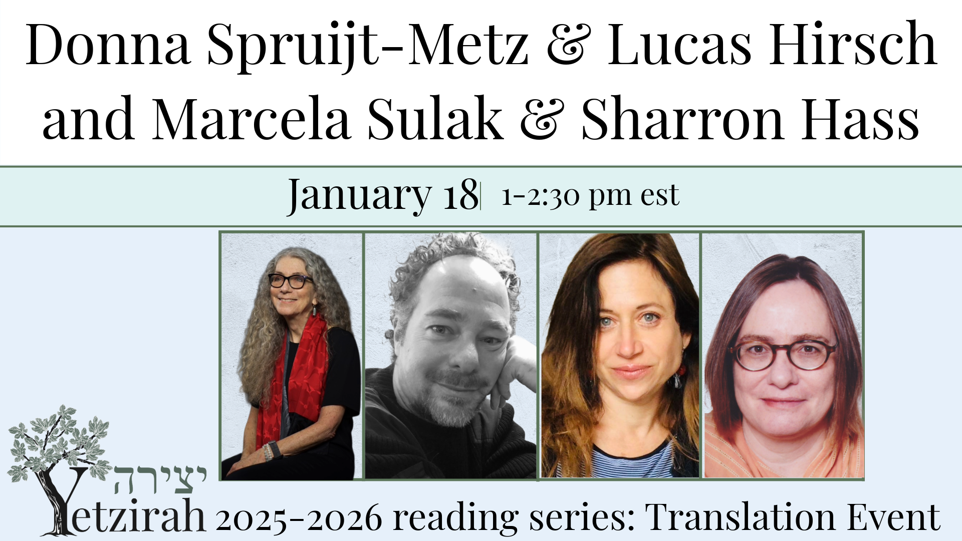March 19 (A Translation Event, co-sponsored by the Yiddish Book Center) Featuring Jennifer Kronovet & Aviya Kushner, with Merle Bachman & Maia Evrona