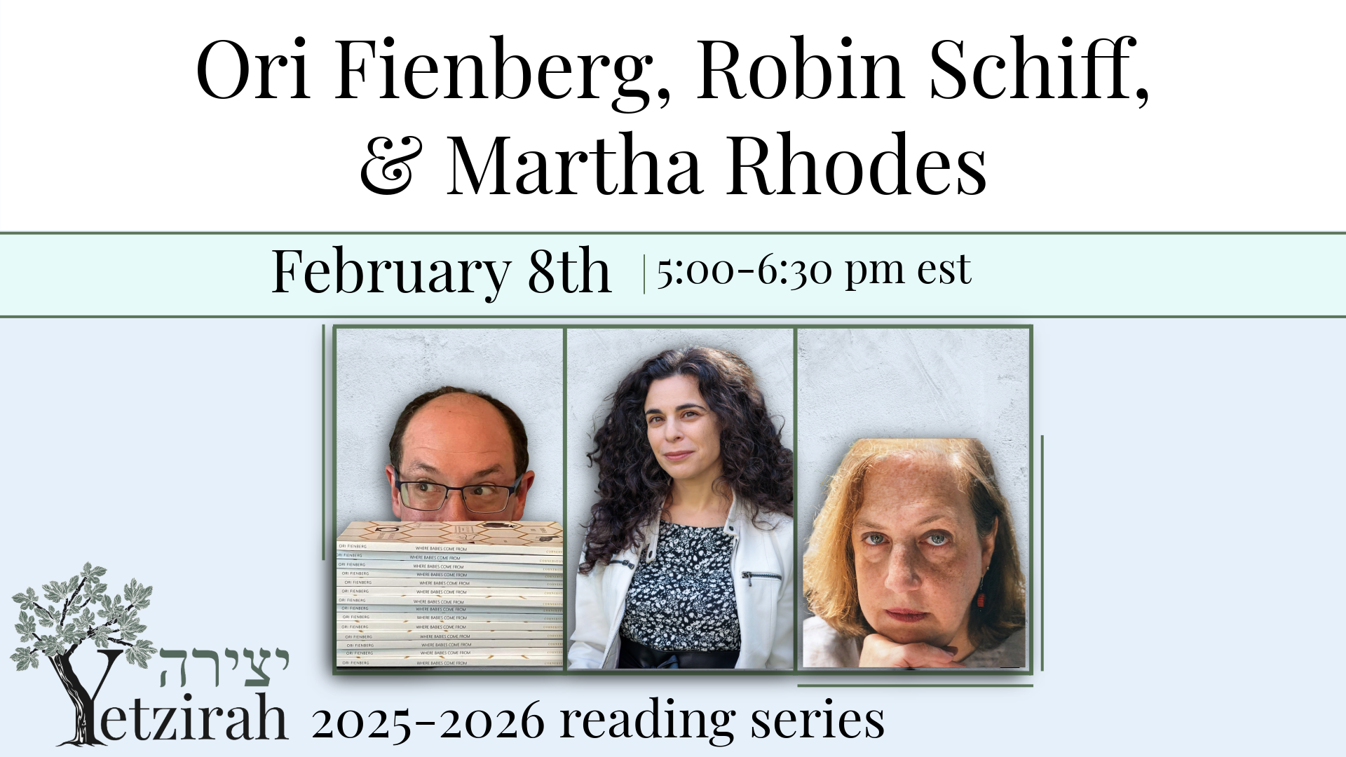 February 8: Ori Fienberg, Robyn Schiff, & Martha Rhodes
